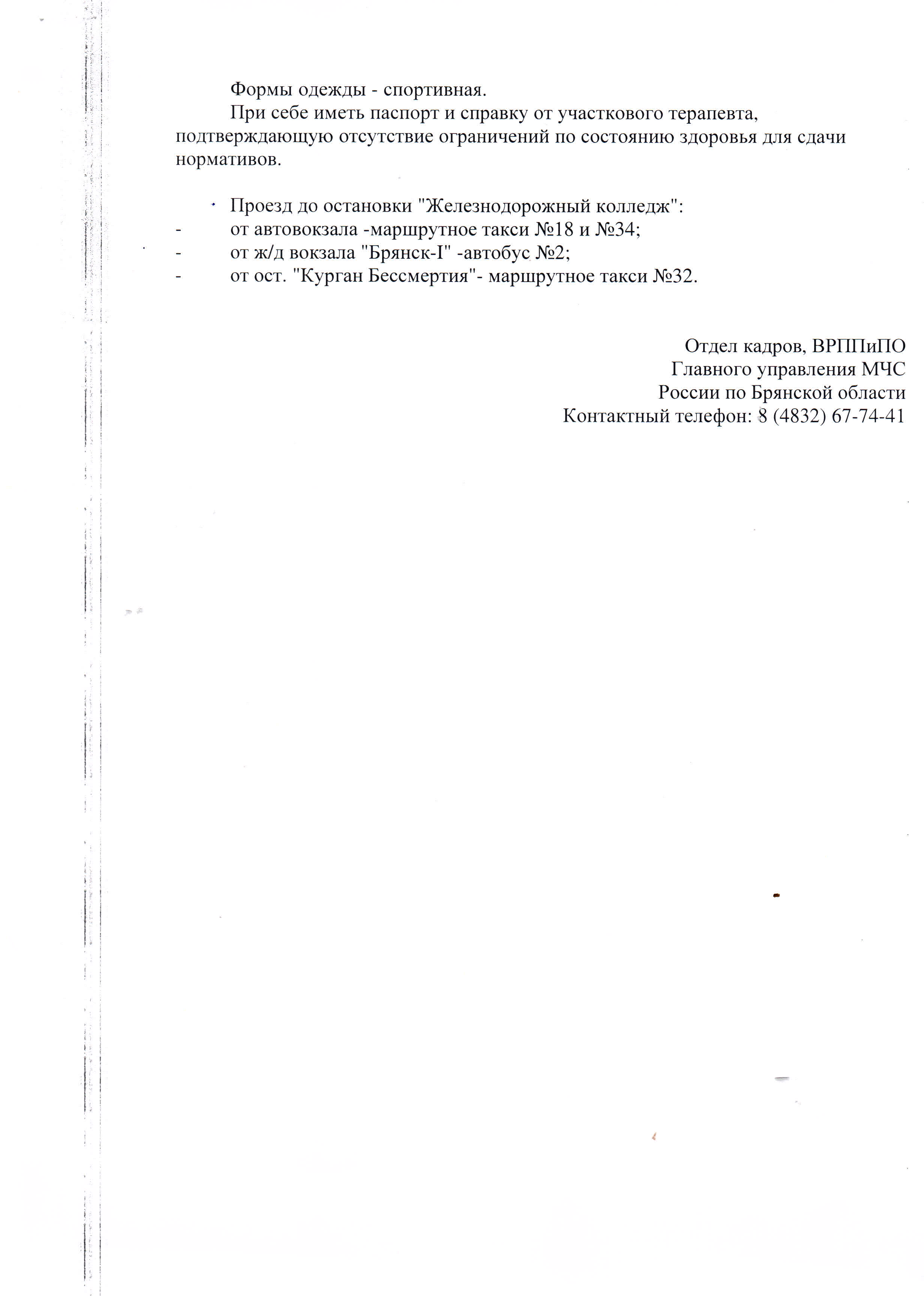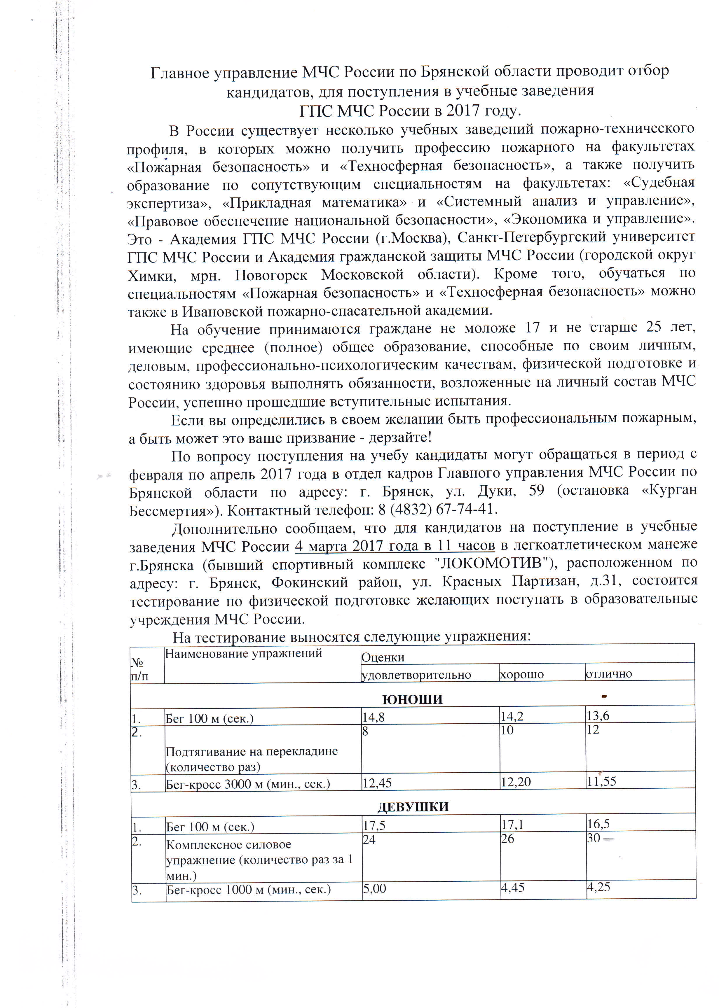 Главное управление МЧС России по Брянской области проводит отбор кандидатов, для поступления в учебные заведения ГПС МЧС России 2017 г. (стр 1., стр.2)